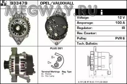 Генератор 14V 100 A (под ручейковый ремень) OPEL Omega B, Vectra A/B, Corsa B, Frontera A/B,Tigra 93-00, Calibra