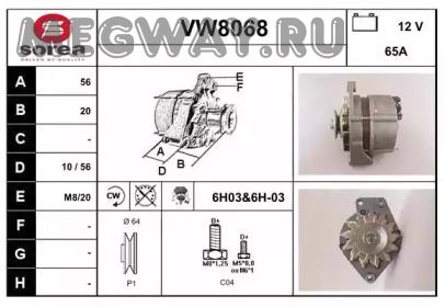 Генератор 14V 65A VW Golf II 1,0/1,3/1,6D-TD 8/83-10/91 ,Jetta II 1,3/1,6D-TD 1/84-12/91 ,Polo 1,0/1,3/1,3D 9/82-9/94 036903 + 031903023D + 036903017HX + 036903017K + 036903017KX + 036903017