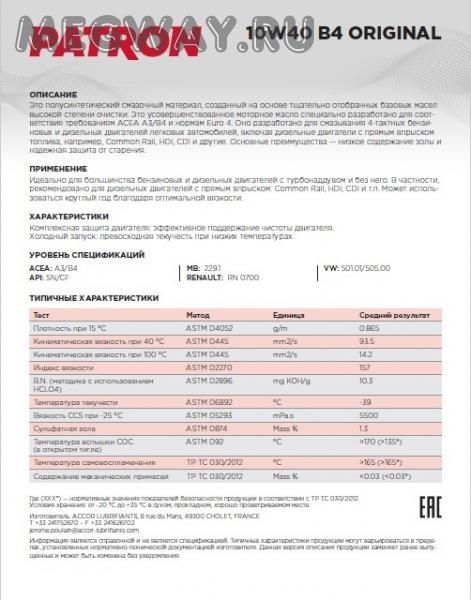 Масло моторное 10W-40 4L SL A3/B3 MB 229,1, RENAULT RN0700, VW 501,01_505,00 ORIGINAL