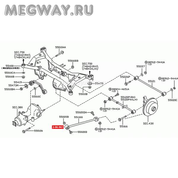 С/блок задн. попереч. тяги Nissan Bluebird (U11) 87-, Prairie (M11) 88-, Stanza (U12) 89-, X-Trail (T30) 01-