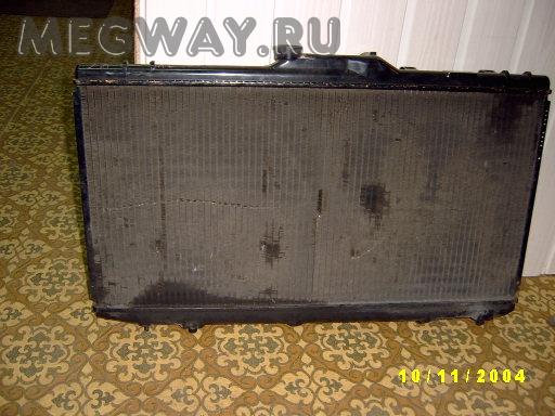 6. Периодически прочищайте радиатор двигателя от листьев и пыли, особенно внимательно проверяйте место между радиатором двигателя и радиатором кондиционера. Очистку можно сделать во время мойки автомобиля потоком воды под давлением. Струю воды необходимо направлять строго под прямым углом к радиатору и следить, чтобы не произошло замятия ячеек радиатора.